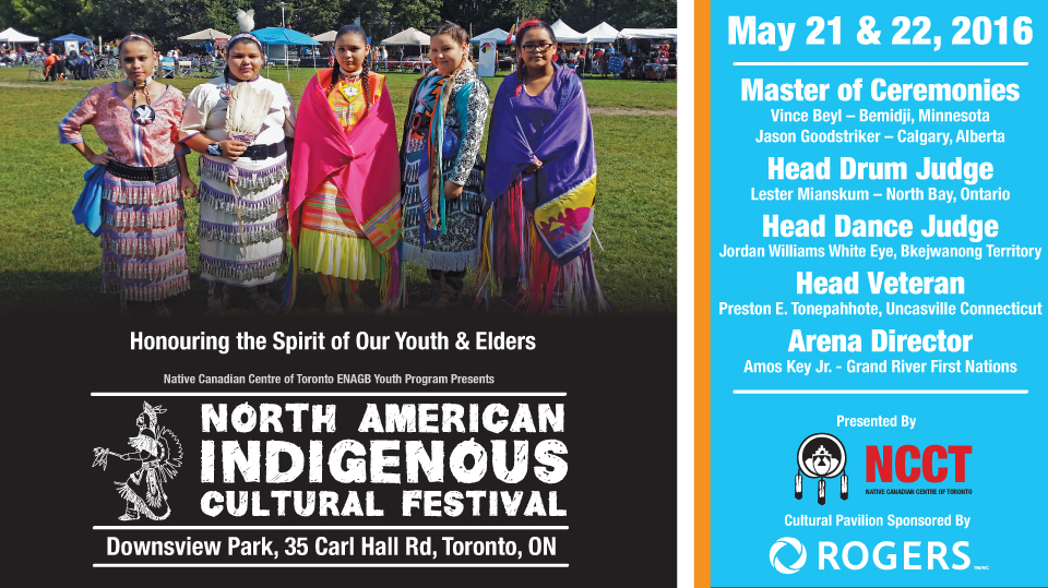 The Native Canadian Centre of Toronto ENAGB Youth program presents our 1st Annual North American Indigenous Cultural Festival May 21st & 22nd at Downsview Park, Toronto!